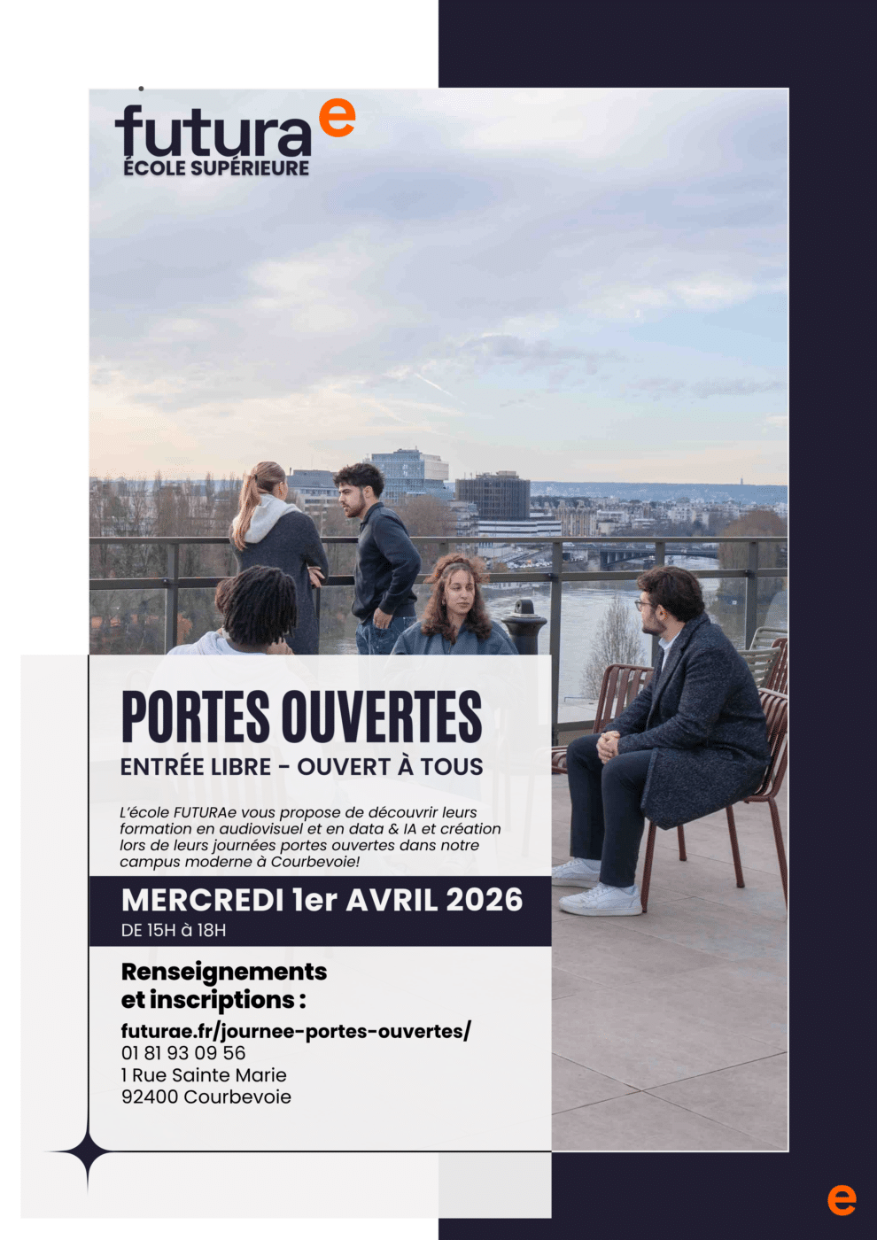 FUTURAe vous invite à découvrir son campus de Courbevoie lors de sa Journée Portes Ouvertes, un temps fort dédié à l’orientation et à la compréhension des parcours d’études dans un environnement en constante évolution.